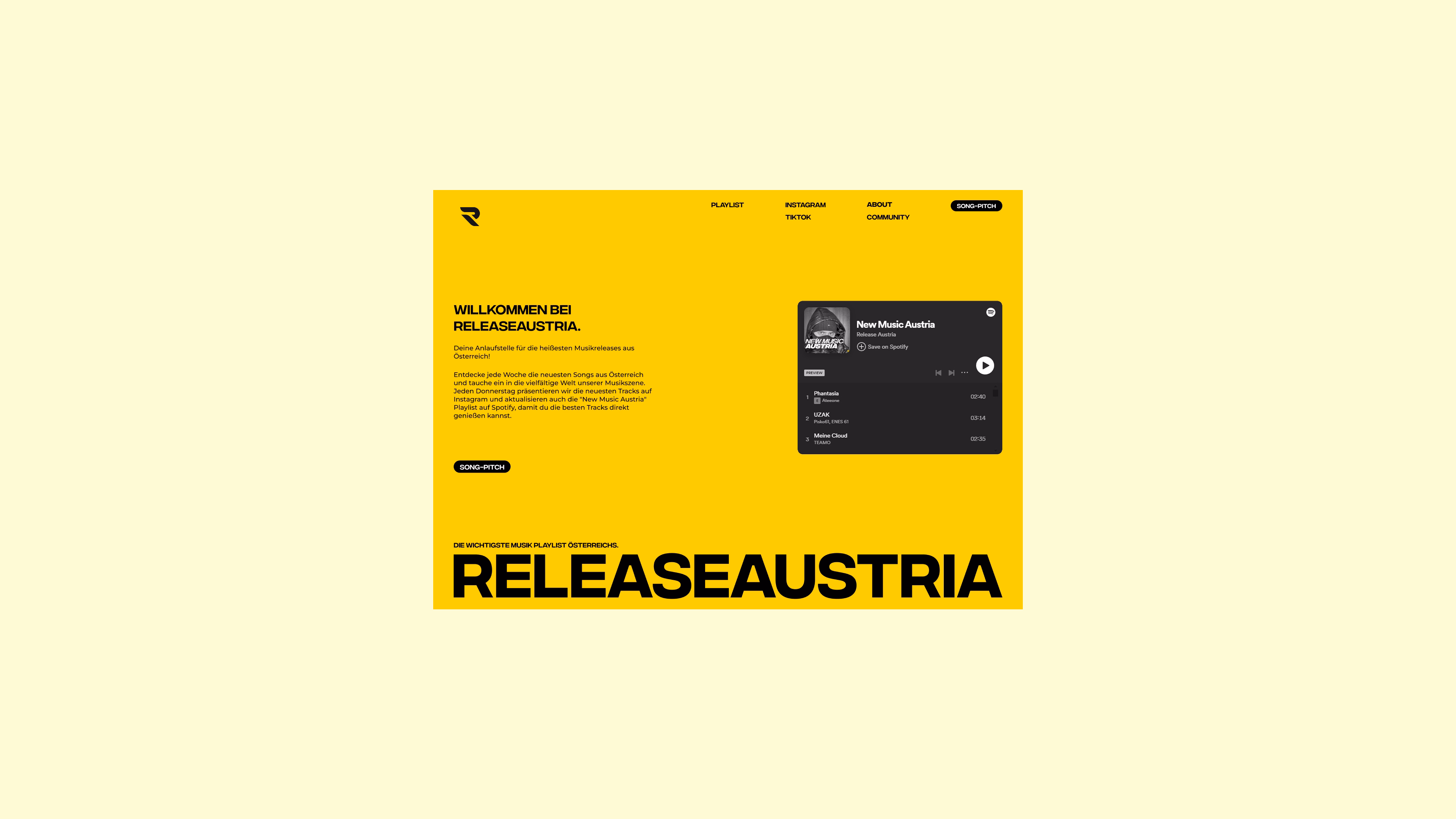 Im Rahmen dieses Projekts wurde die komplette Website für Release Austria konzipiert und entwickelt – eine Plattform, die sich der Förderung der österreichischen Musikszene widmet. Die Seite dient als zentrale Anlaufstelle für wöchentliche Musikankündigungen, Playlist-Updates und die Community rund um heimische Künstler.